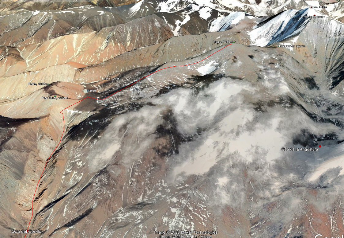 Convinaciones: Por el norte: Morro del Negro 3.650m. Por el sur: Platita 4.210m, Heidi 4.150m