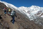 -Dificultad: IntensaActividad de 2 a 6 días y entre 8 y 10 horas de duración. Porteando una mochila de expedición de 65 o 85 litros con 15/20kgs. Tiene incorporado momentos de breves descansos, para poder completar un itinerario. El terreno puede tener inclinación de entre un 10% y un 35% con interesantes resaltes, de entre 2 a 3 horas. Es una actividad en la que usted regresara fatigado. Se necesita algo experiencia previa en actividades intensas, usted se moverá por momentos por acarreos de terreno suelto en nieve y roca, donde se necesita habilidad de movimientos. Más / Poco difícilTrekking sobre un sendero mayormente marcado, sin ninguna dificultad técnica, solo secciones de moderadas siempre menores a 45%. Se aprenderán conocimientos básicos de caminata respiración y uso de los bastones de trekking. Involucra exposición al clima, precaución al sol y el calor. No se usara ningún tipo de equipamiento técnico, tan solo bastones de trekking son recomendados. Ocasional uso de la cuerda para superar pasos de II y III grado. No es necesario experiencia previa. Más