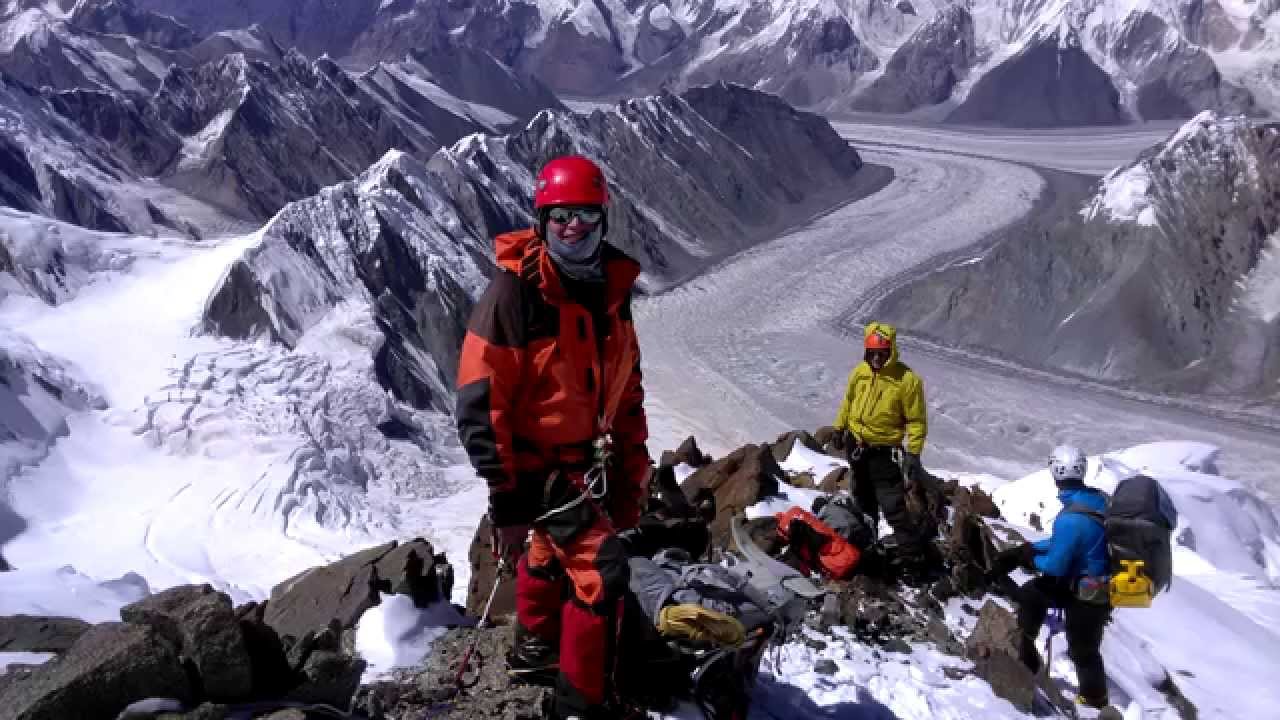 El primer ascenso La primera ascensión tuvo lugar en 1956 cuando una expedición liderada por Abalakov alcanzó la cima tras 30 días de asedio a la montaña. La montaña se levanta sobre un sistema complejo de glaciares y aristas. Vientos muy fuertes y tormentas con grandes nevadas convierten la ascensión en una experiencia dura. Montañeros con mucha experiencia, mantienen que es perfectamente comparable a un “ochomil”.