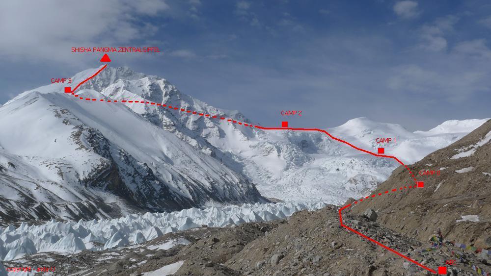 Shisha Pangma fue el último de los picos de 8000m en ser escalado. A partir de enero de 2000, más de 434 personas lograron ascender con éxito a la Cumbre Central, pero solo 165 personas continuaron a la Cumbre Principal, a poco más de una hora de ascenso, separadas por un filo de nieve a veces muy inestable.