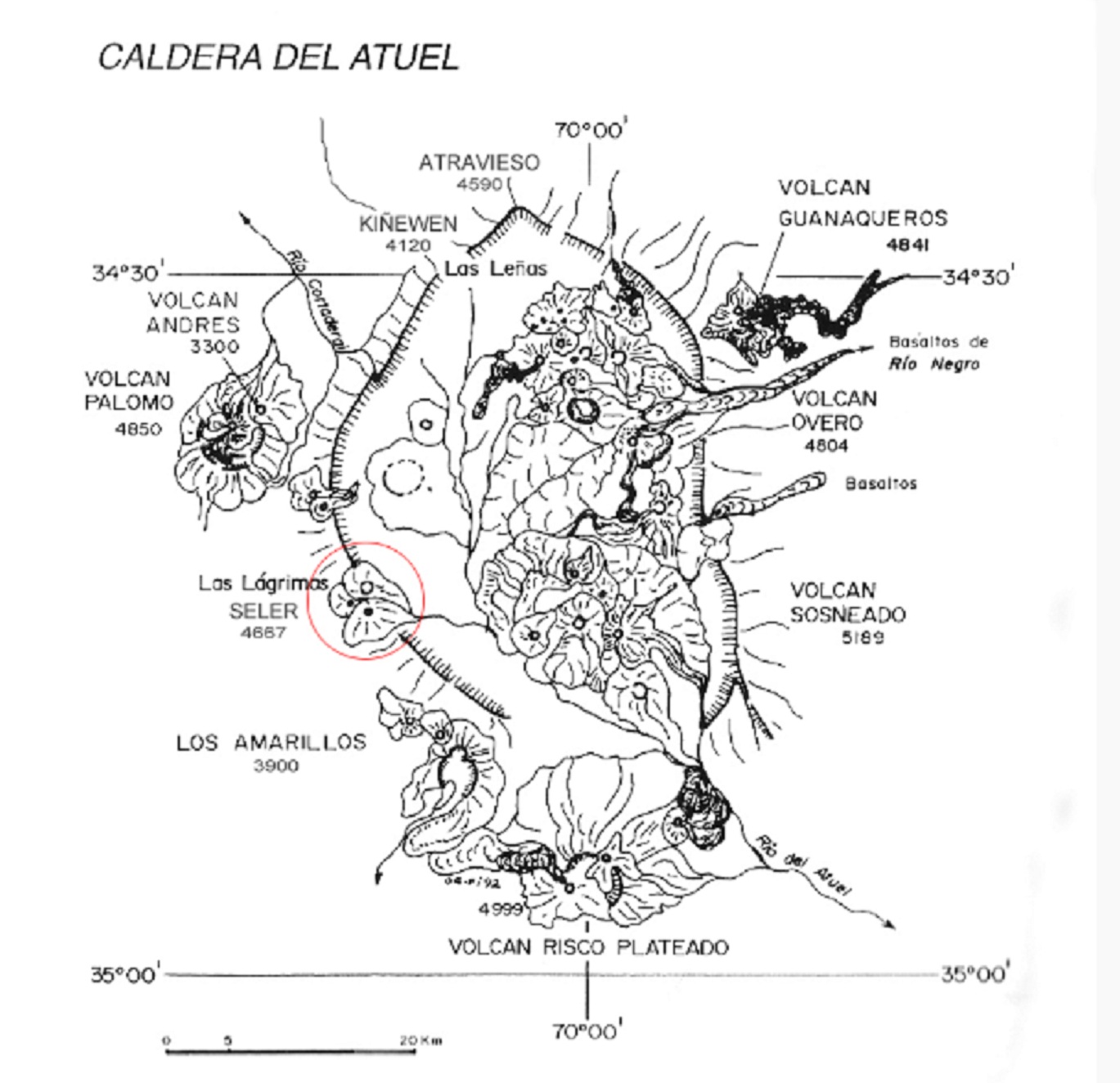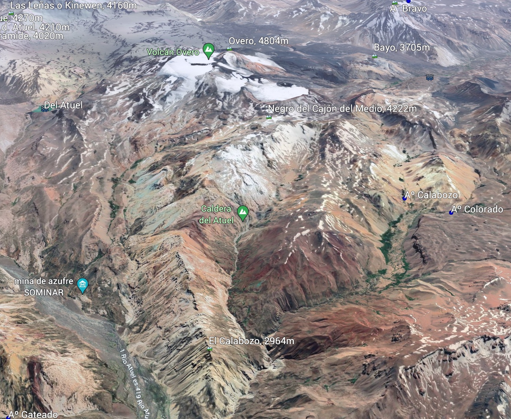 En 1954 la empresa Sominar, que explotó el yacimiento de azufre desde el año 1941 cerca de la cumbre del volcán Overo a 4700m de altitud, construyó un camino de 36km desde el lugar donde se encontraban las oficinas administrativas de la minera, a 2250m junto al río Atuel. Paralelamente a esto, se levantó un cable carril de 12km de longitud que tenía una capacidad para transportar por gravedad, 200 toneladas diarias de caliche en un desnivel de 2450 metros.